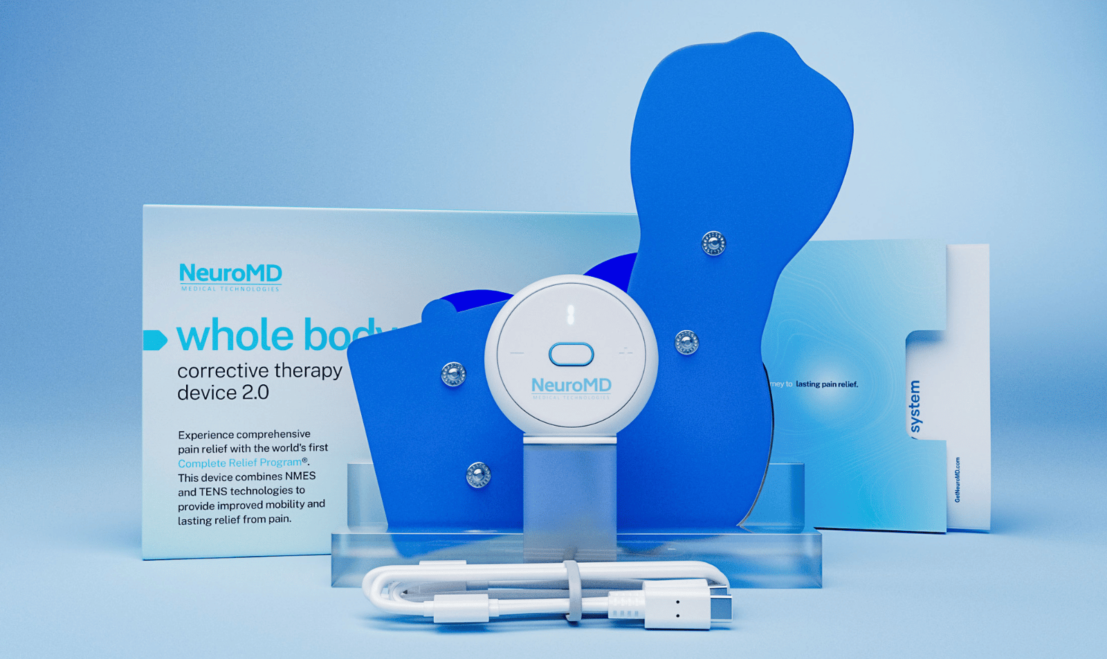 The NeuroMD is one of the first at-home devices to combine both NMES and TENS technology in a way that makes it effortless for anyone to pick up and start using.